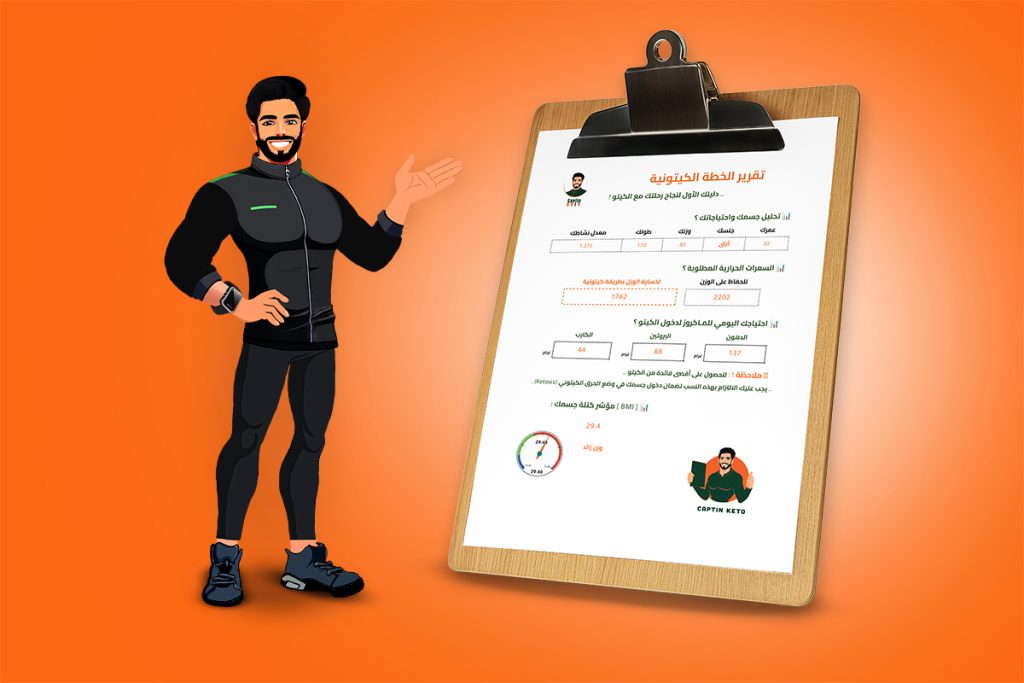 كابتن كيتو برنامج غذائي كيتوني فريد و مميز. لإنك لن تجد جدول وجبات تنفذة فقط. بل انه يتدخل في تفاصيل حياتك، بيعرف وش يناسبك ووش ما يناسبك، و يصمم لك برنامج على احتياجاتك بالملي و يعطيكم تقرير مفصل عن حالتكم و ووجبات مخصصه لهدفك (خسارة الوزن– الثبات علي الوزن– عيش حياة صحية).